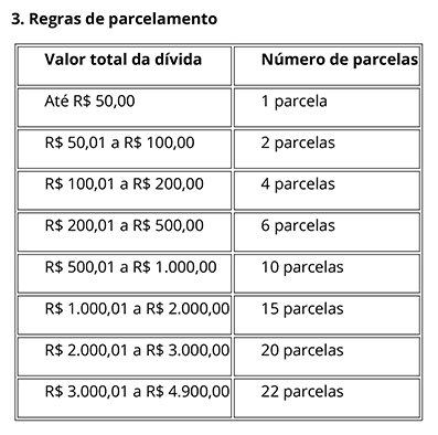 3. Regras de parcelamento
