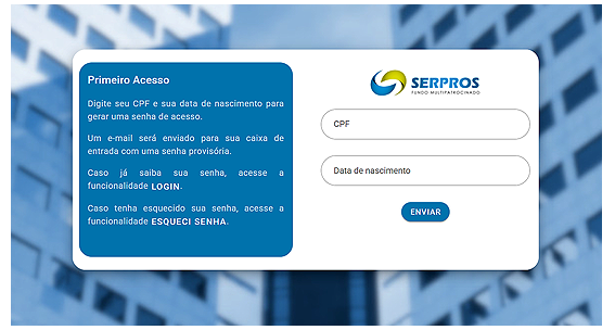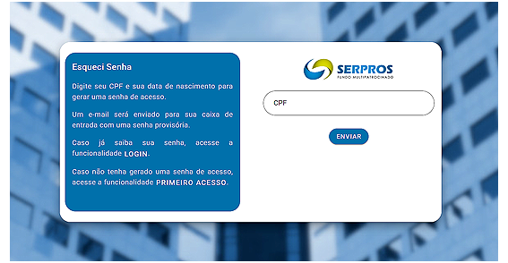 Se o seu e-mail já constar no sistema do SERPROS, você pode ir para as etapas "Primeiro acesso" ou "Esqueci minha senha".