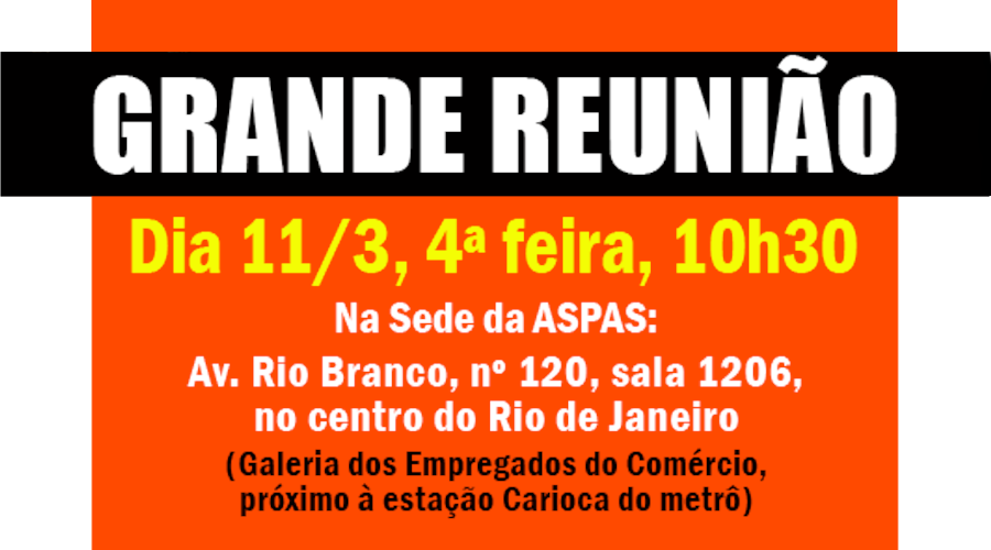 Vamos conversar sobre nossa luta contra o insano reajuste de 29,39% no PAS/Serpro e outros assuntos. Encontro será na sede da Associação, no Rio de Janeiro.