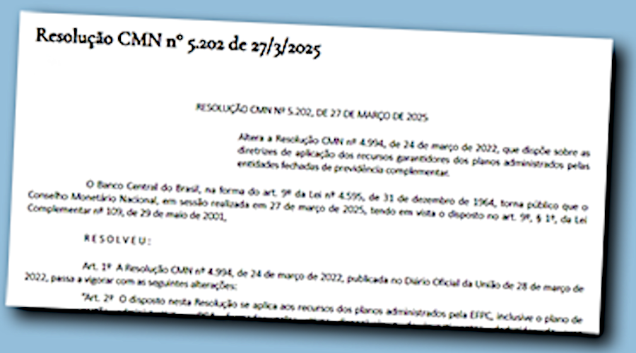 O Conselho Monetário Nacional (CMN) aprovou a Resolução n° 5202 na quinta-feira passada (27/03) que altera a Resolução n° 4.994/2022 e define novas regras de investimentos para as entidades fechadas de previdência complementar (EFPC). Entre outras novidades, a nova regulação acabou com a obrigação da venda de imóveis até 2030, pleito defendido pelos fundos de pensão e pela Abrapp - Associação Brasileira das Entidades Fechadas de Previdência Complementar.